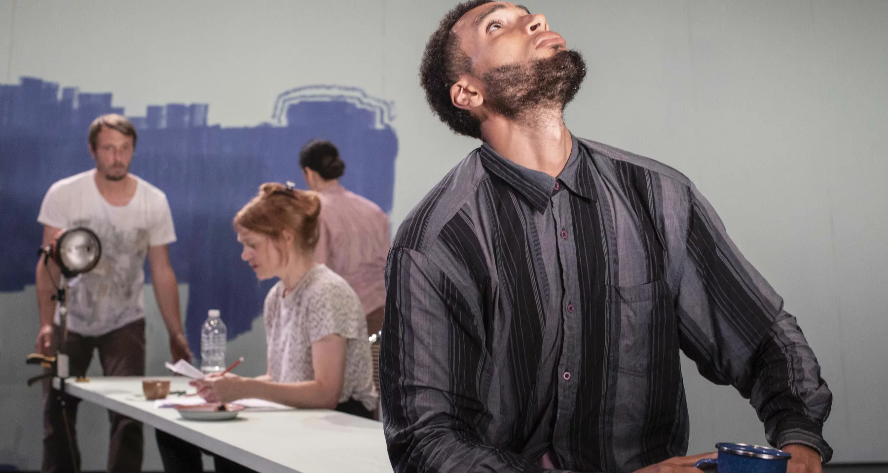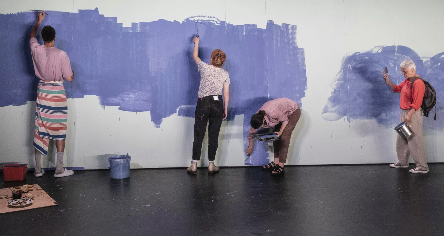 Alors que les interprètes entrent, sortent, peignent, repassent, re-repassent, on s’en vient à penser au doomscrolling infini : comment il pourrait s’incarner au théâtre. La mécanique est la même : de l’action sans conséquence, du mouvement sans destination, un flux de micro-événements qui ont l’air d’exister mais qui ne produisent rien, sinon la sensation d’avoir été occupés. On pense à beaucoup de choses puisqu’il n’y a pas une chose à laquelle penser. Economie de l’attention.